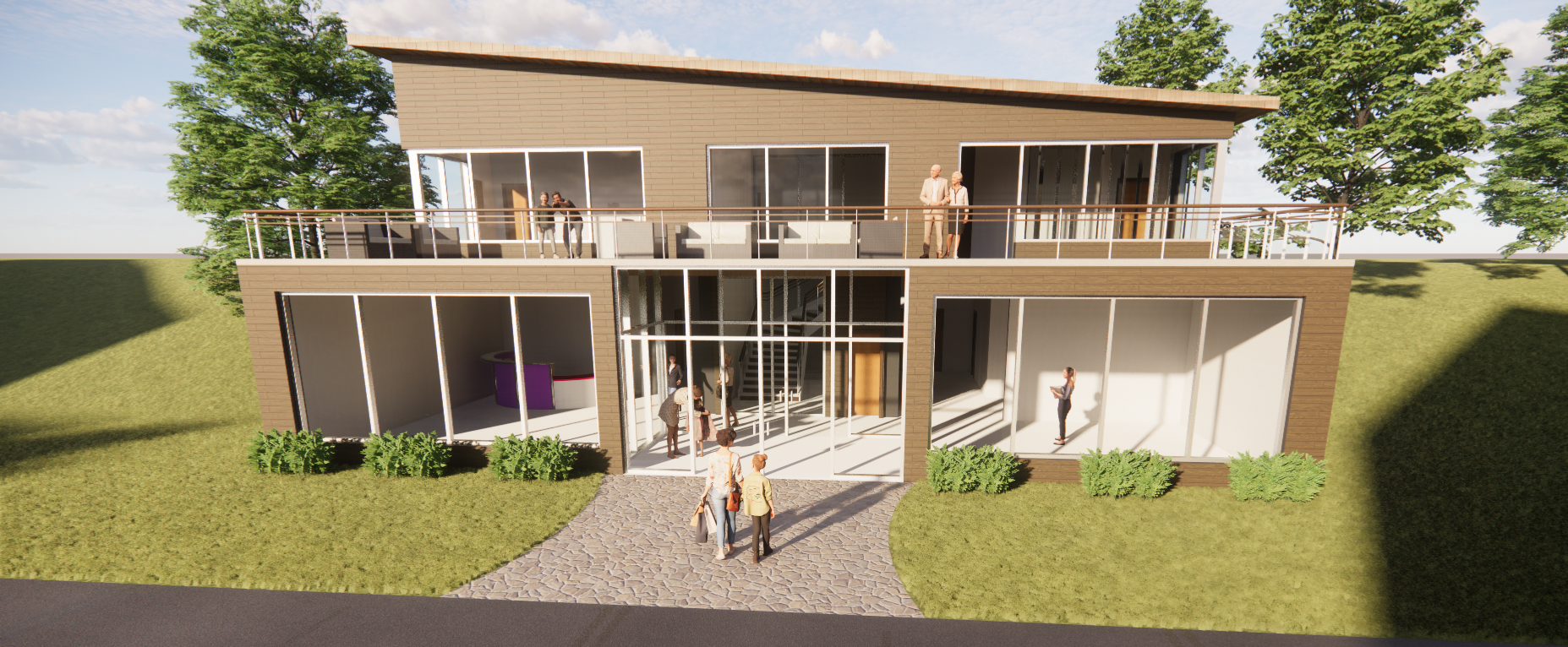 The Maple Grove Community Hub was designed as an intergenerational care center serving both youth and elderly populations in the cold climate of Stowe, Vermont. Developed in tandem with the Bay Breeze project in Florida, the goal was to explore and test passive heating and cooling strategies across drastically different climates.
